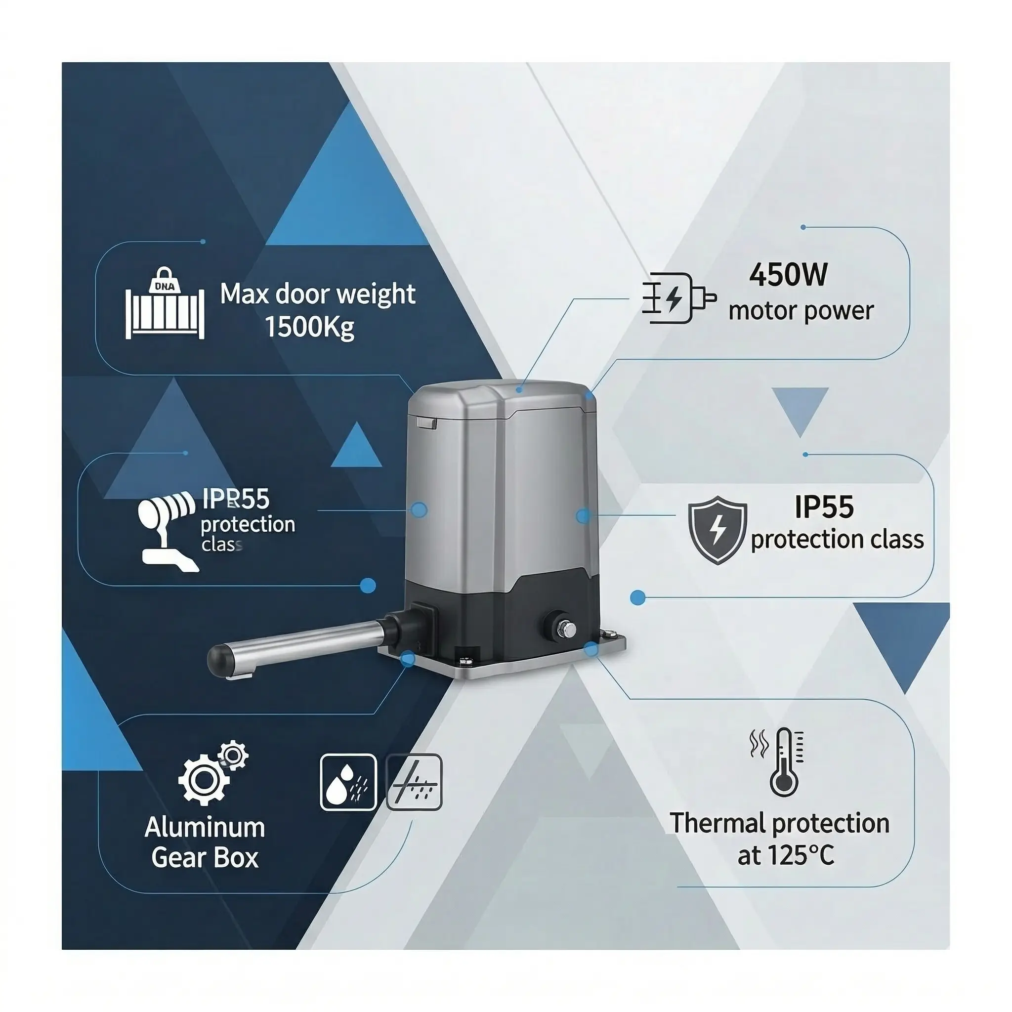 - โ๏ธ Powerful 450W Motor โ Supports heavy gates up to 1500KG, ideal for residential & industrial use
